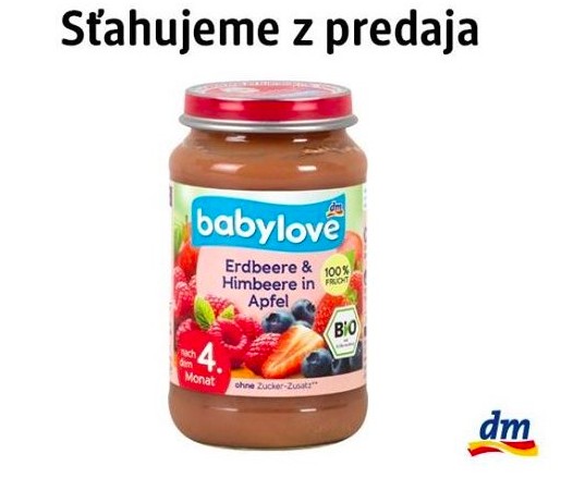 From the shelves of Czech and Slovak DM drugstores, Babylove BIO 190 grams baby foods with strawberry, raspberry and apple flavours for infants from the completed 4th month are being withdrawn. This measure concerns products with a best-before date up to 5 July 2019.