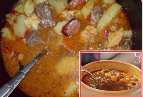 Serve the dish hot, preferably with fresh bread or other baked goods. In Hungary they add pickled cucumbers as a side to this dish. And one more small tip: when cooking this recipe always use smoked sausage, it gives the food a better flavor than ordinary sausage. Enjoy your meal!