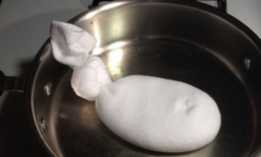 Wrap sea salt in the sock and heat it on a clean pan over medium heat for 4 to 6 minutes.