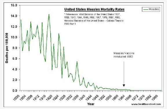 Well, during my medical training I was taught that people who died in the thousands or tens of thousands from diseases such as diphtheria, pertussis and measles — diseases for which we have vaccines — stopped dying from them after vaccination was introduced.