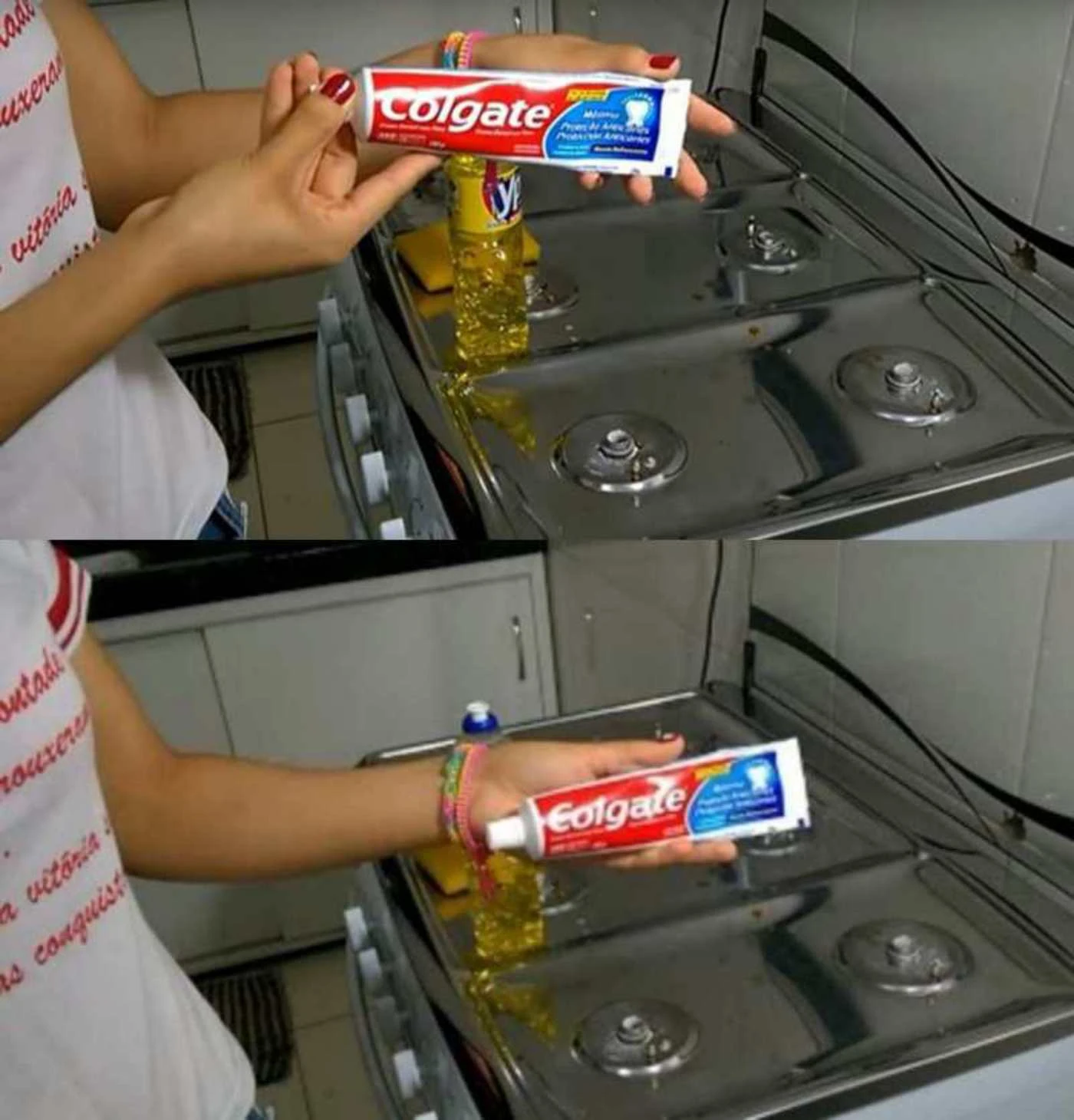 The burnt bottom of a pan can trouble any cook. Toothpaste can handle this problem too. Apply it to the dirty spot, scrub with a sponge and rinse. The surface will be clean without using aggressive chemicals.